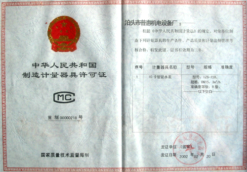 計量器具新產(chǎn)品樣機試驗合格證書、計量檢測體