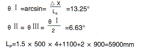 | 即LA(大于等于)≥997.69mm……(1) 一般Lp≥1.5DN×4+LⅠ+LⅡ+LⅢ……(2) (Lp為補(bǔ)償段安裝長度) 根據(jù)(1)式,取余量,將LA值向上圓整: LA=1200 (在安裝跨距要求允許條件下,LA適當(dāng)大一點(diǎn)好) |