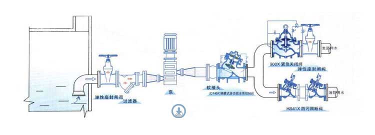 4.生活飲用水管道上串聯(lián)加壓泵時(shí)安裝于泵吸水管上。