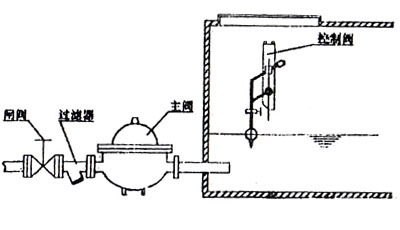 KYF型浮球式液壓水位控制閥安裝使用維護(hù)說明1.液壓水位控制閥公稱壓力分1.0Mpa、1.6Mpa兩等級(jí)。 2.主閥與導(dǎo)閥可組合安裝與分離安裝。100X以分離安裝為宜,當(dāng)主閥與導(dǎo)閥分離安裝時(shí),所配管用戶自選。 3.為防止主閥內(nèi)堵,閥前應(yīng)加裝過濾器。 4.為安裝與維修方便。在主閥或控制導(dǎo)閥頂部應(yīng)留足夠大的入孔。 5.吊球式液壓水位控制閥,液面高度可調(diào),調(diào)整時(shí)改變球上方卡箍位置即可達(dá)到目的。 6.吊球式液壓水位控制閥,聯(lián)桿端部固定螺絲緊固要牢靠,防止松動(dòng),以免動(dòng)作失靈,并定期檢查。 7.重錘位置可調(diào),球升卡箍位置,球應(yīng)隨波面同時(shí)上升,不然,調(diào)整重錘位置加大力臂長度即可。 8.主閥不過水時(shí),檢查小導(dǎo)閥是否堵塞,當(dāng)達(dá)到設(shè)定液面繼續(xù)供水時(shí),檢查導(dǎo)閥內(nèi)是否有臟物卡在閥瓣與閥芯之間。 9.液壓水位閥前是否設(shè)止回閥?液壓水位閥下游要安裝手動(dòng)閘閥或碟閥,起到硬關(guān)閉的作用;如果液壓水位閥為了壓力或其它考慮進(jìn)水口安到水位以下的,要考慮安裝止回閥,防止水回流。 KYF型浮球式液壓水位控制閥安裝示意圖A. KYF型主閥體與控制導(dǎo)閥結(jié)合式安裝  |